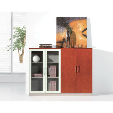 2、實木文件柜,由鋁合金邊框配強化玻璃的的玻璃門和實木門兩種結(jié)構(gòu)組合。左邊為鑲嵌鋼化玻璃設(shè)計,右邊為實木門柜。
